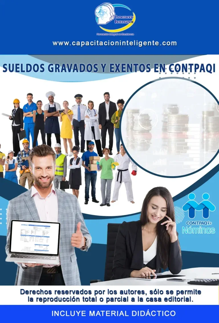 Manual con el paso a paso en imágenes de cada configuración, plantillas de hoja electrónica y archivos .bak con casos prácticos completamente configurados para restaurar en tu sistema Contpaqi Contabilidad.